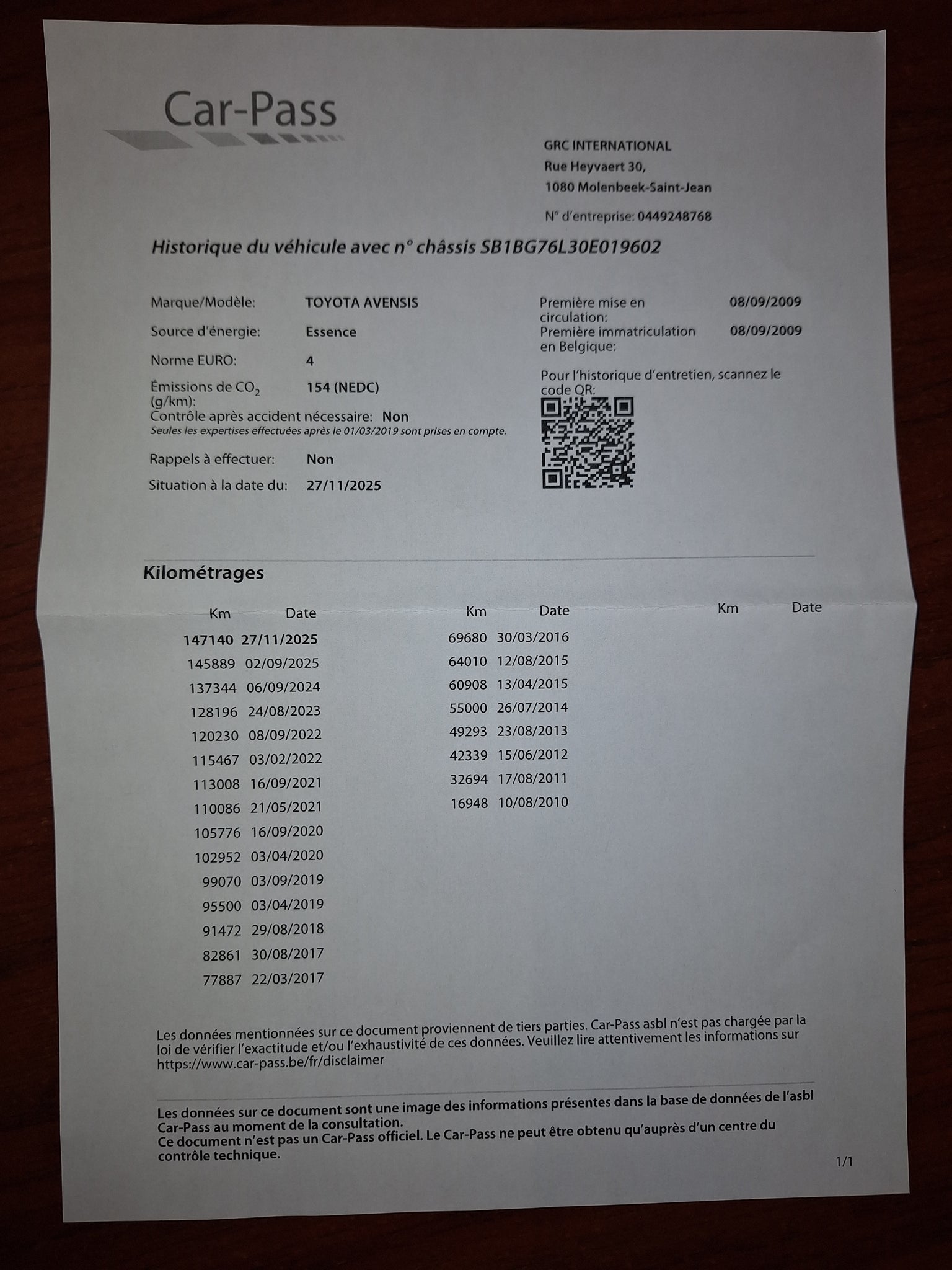 Kilométrage: 147.140 Km