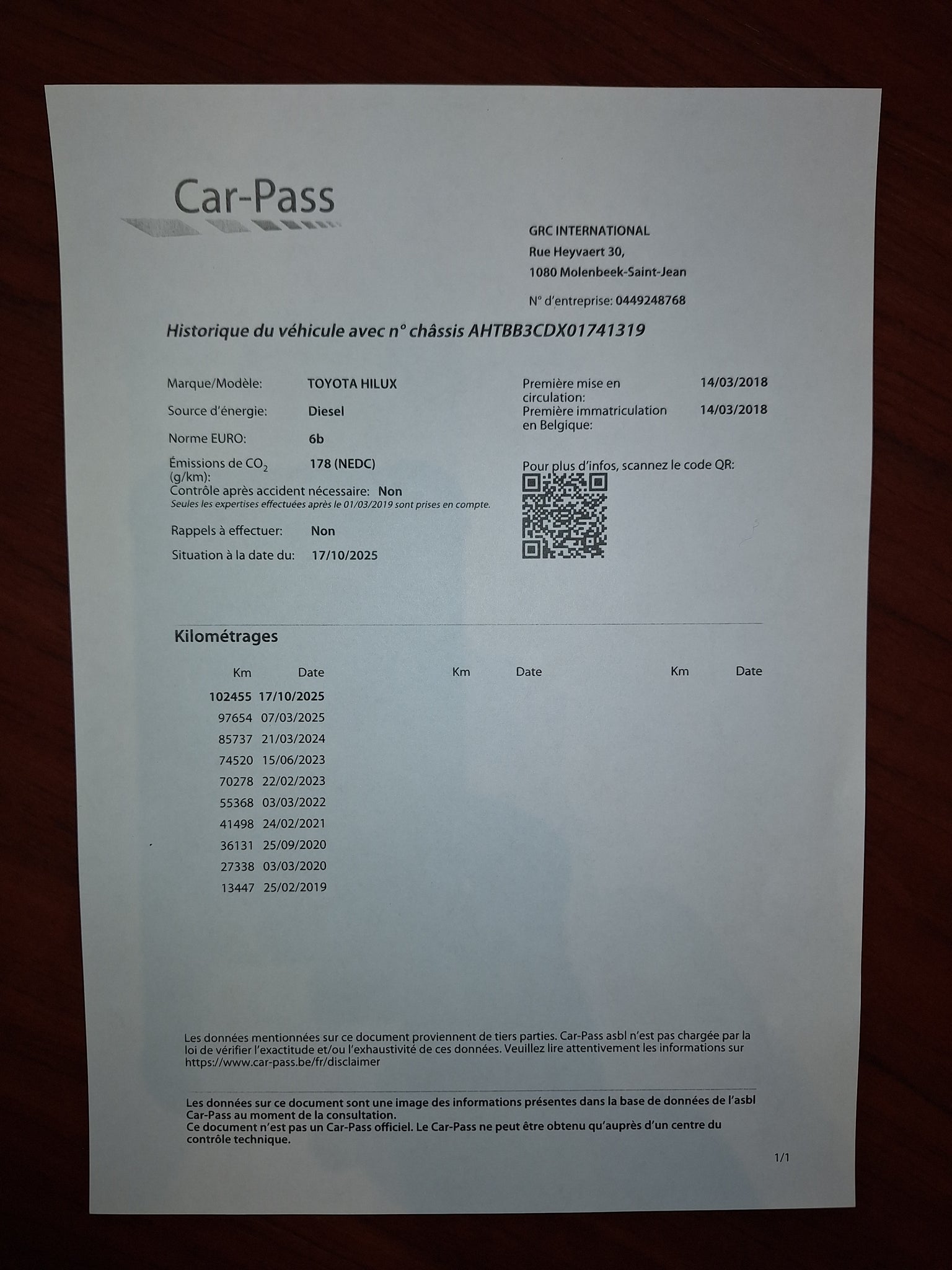 Kilométrage: 102.965 Km